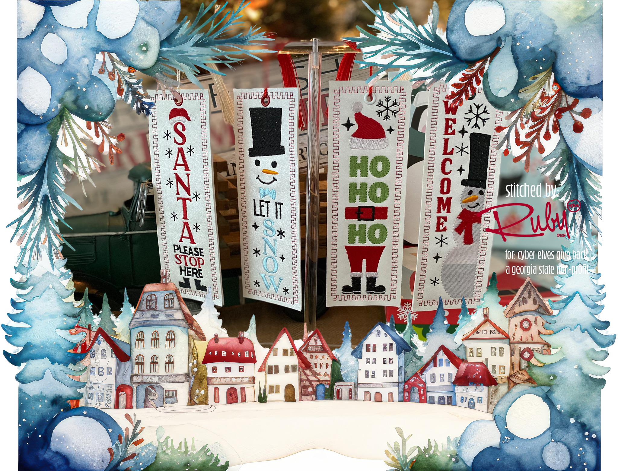Set of eight Christmas designs that can be used as is or bookmarks, ornaments and door hangers. Perfect for the holidays.
