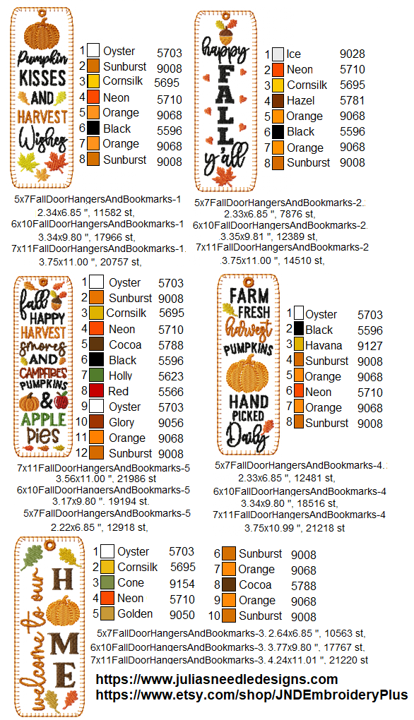 Set of five fall doorhanger and/or bookmark designs. Perfect for the season.