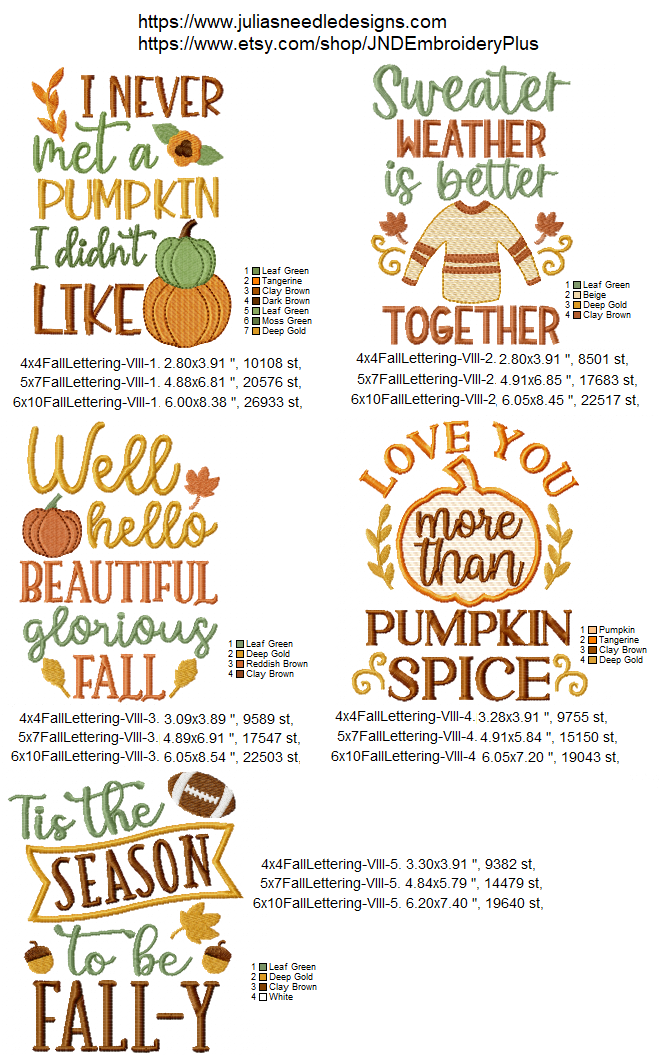 Set of five fall lettering designs. Just perfect for your fall projects.