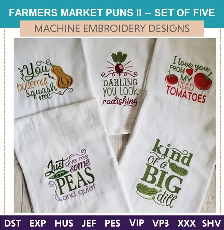 I embroidered all weekend with Farmer's Market Puns II. I made aprons and towels. Each one turned out beautifully. I just love the designs and value!