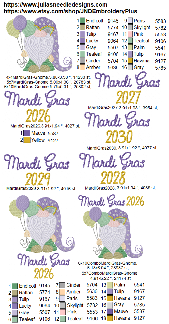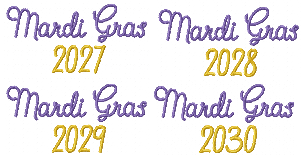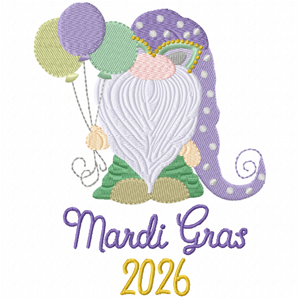 Adorable little gnome ready for Mardi Gras. Included are years 2026-2030.