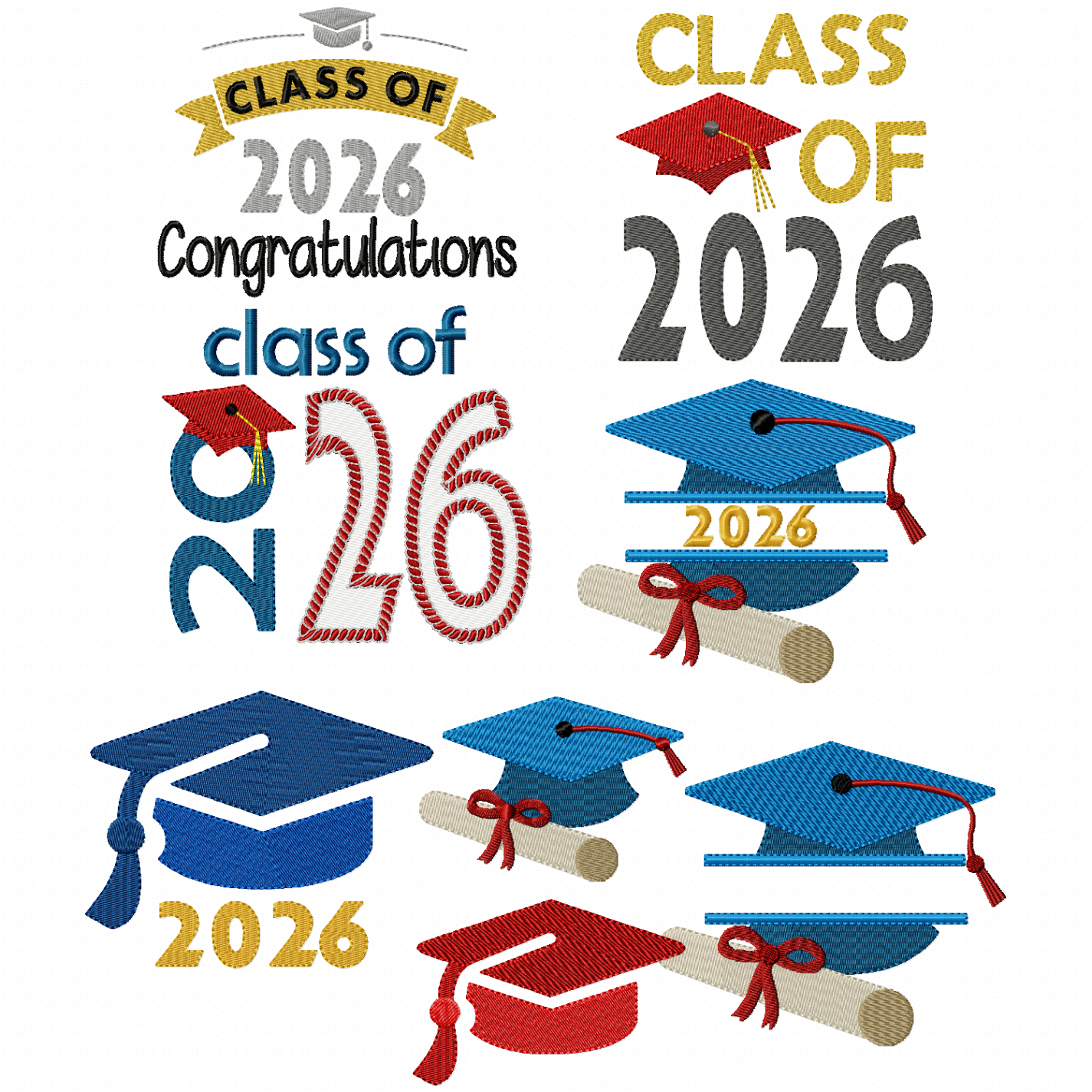 Set of seven designs to celebrate the 2026 graduates.