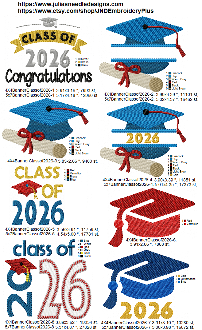 (1)Hoop: 4x4 & 5x7 All Designs (Except Single Grad Hat)