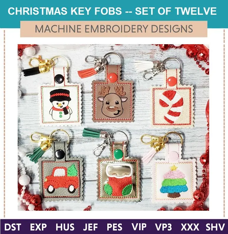 Set of 12 designs for the Christmas season.. Twelve individual & twelve key fobs.