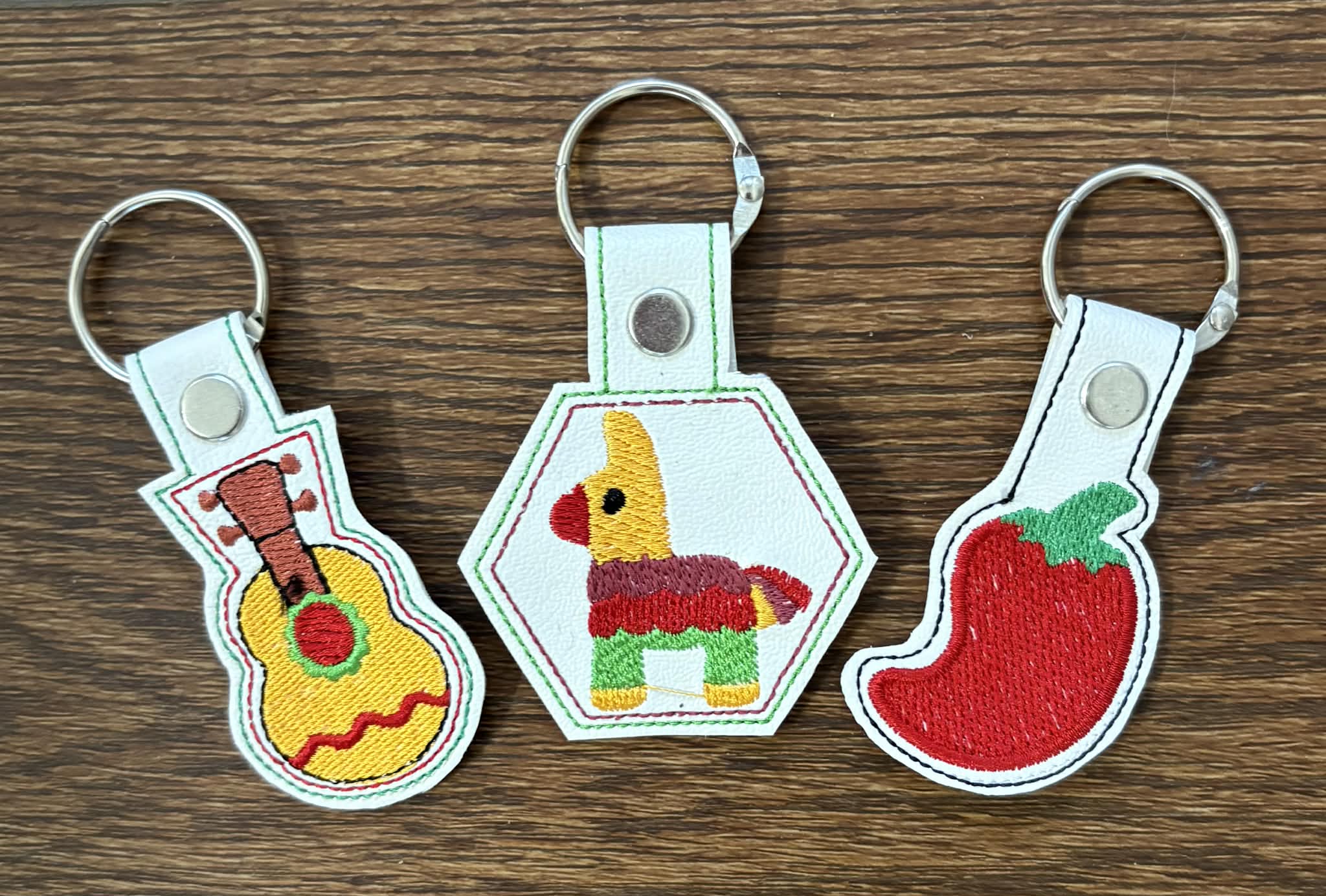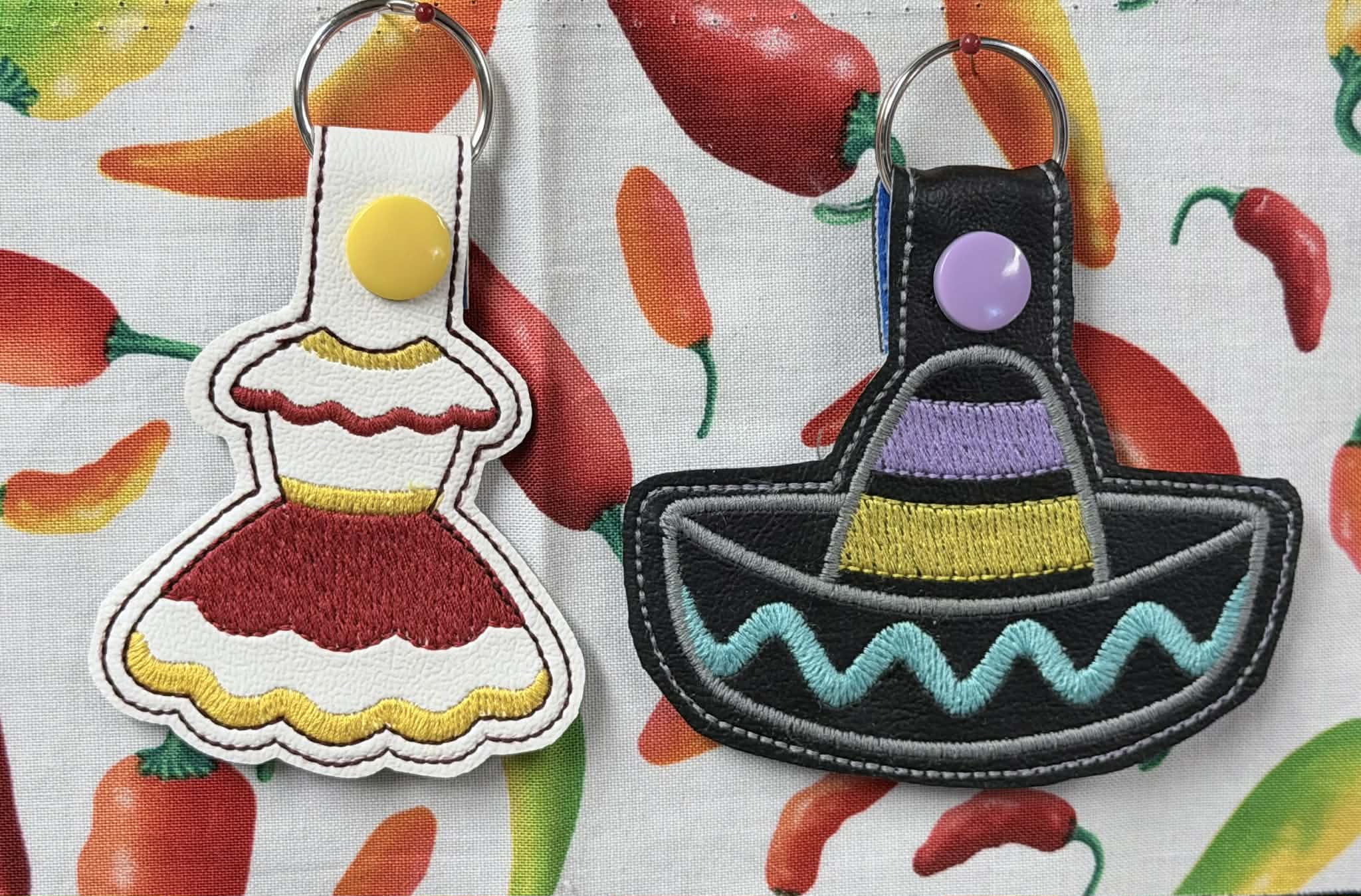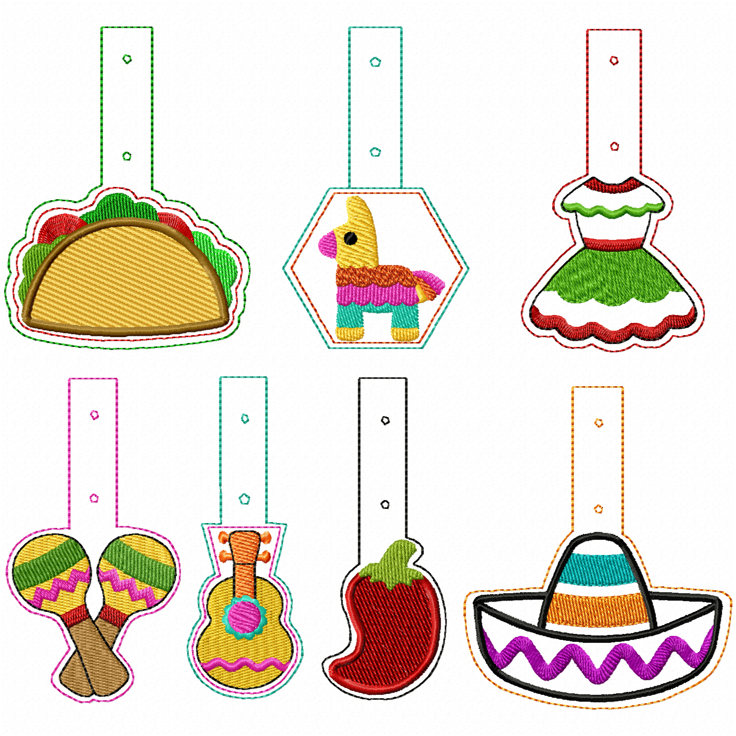 Set of seven festive key fob designs celebrating Cinco De Mayo or any time of the year..