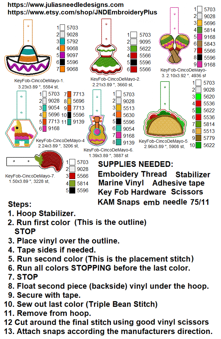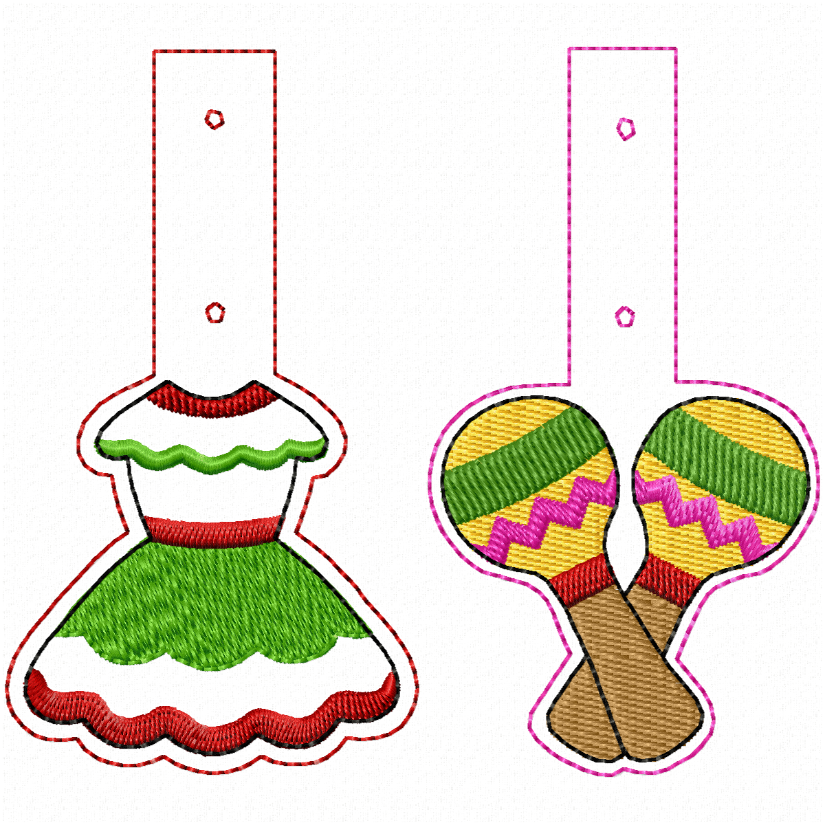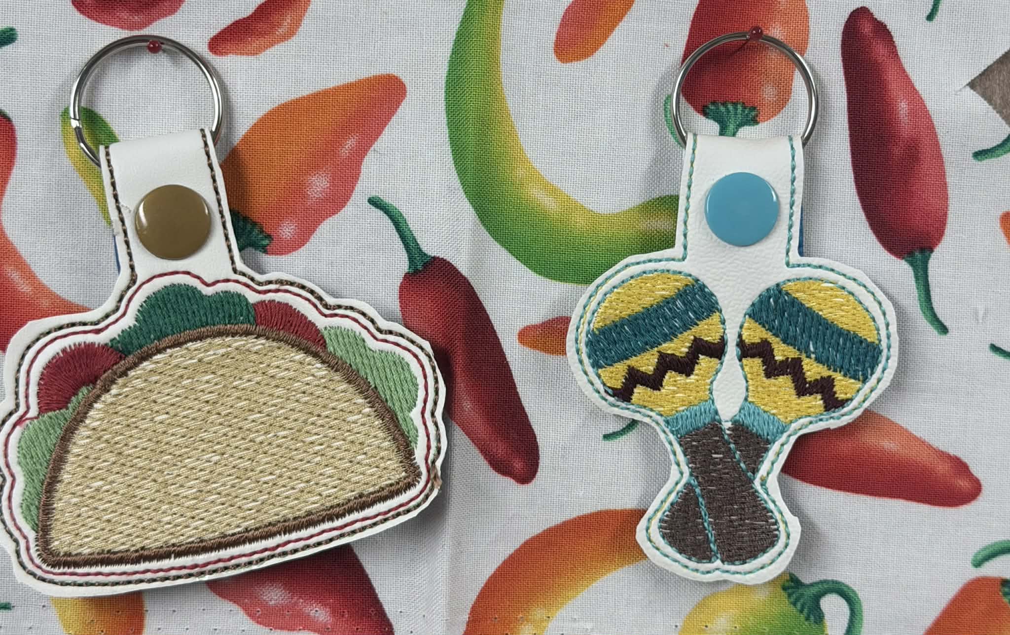 Set of seven festive key fob designs celebrating Cinco De Mayo or any time of the year..