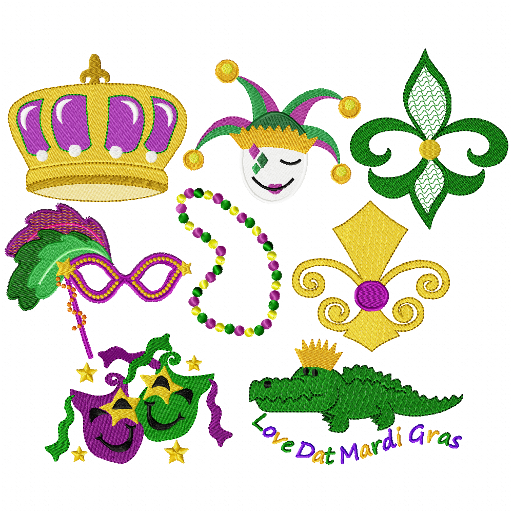 perfect design and stitch out for a Mardi Gras theme kitchen towel! Used as a hostess gift.