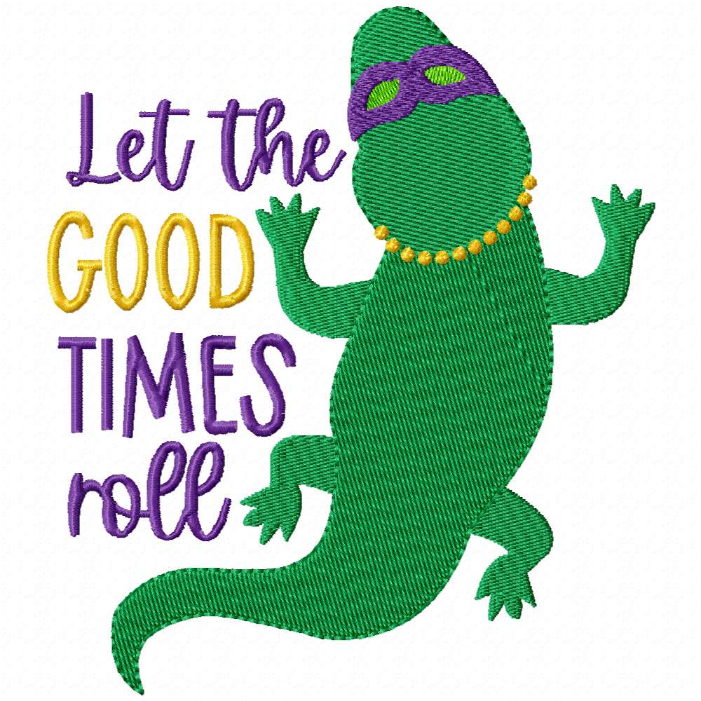 Hoop: 6x10 (Alligator with Text & Mardi Gras mask)