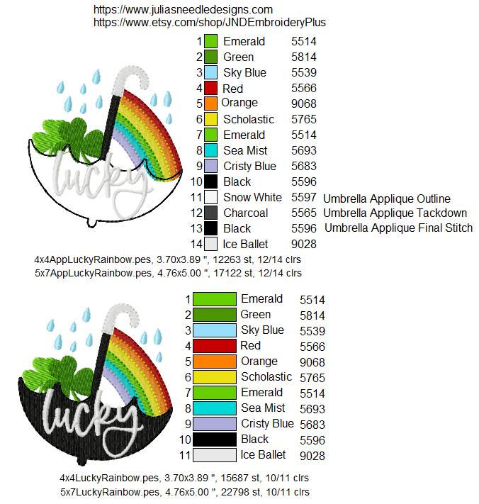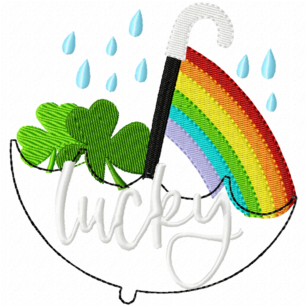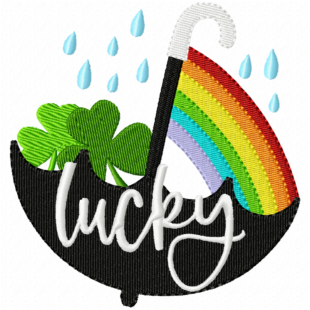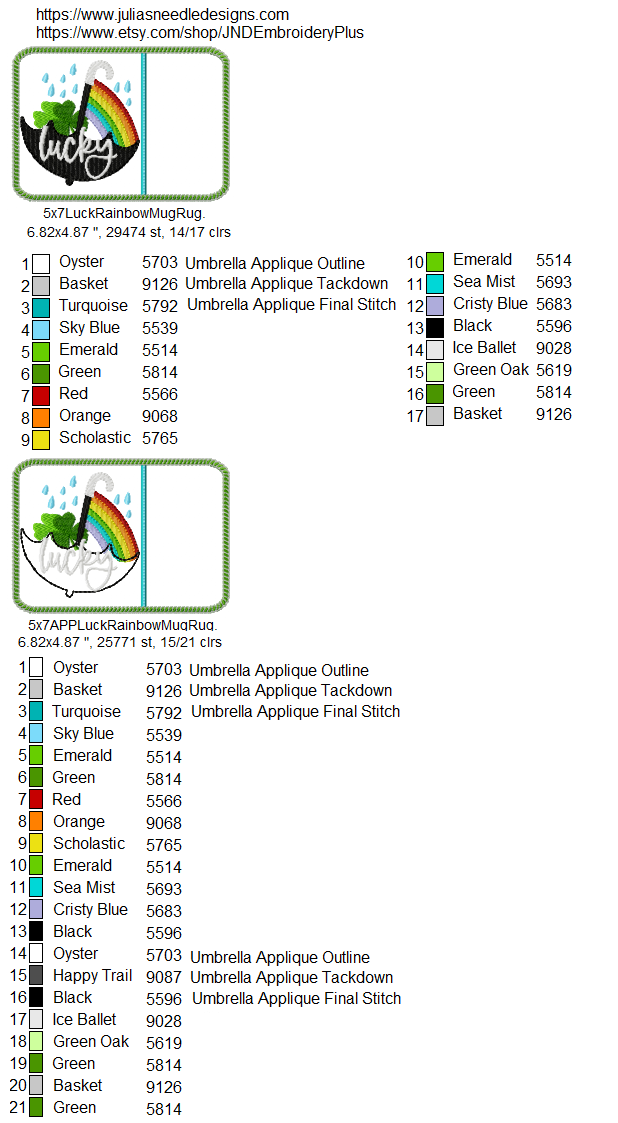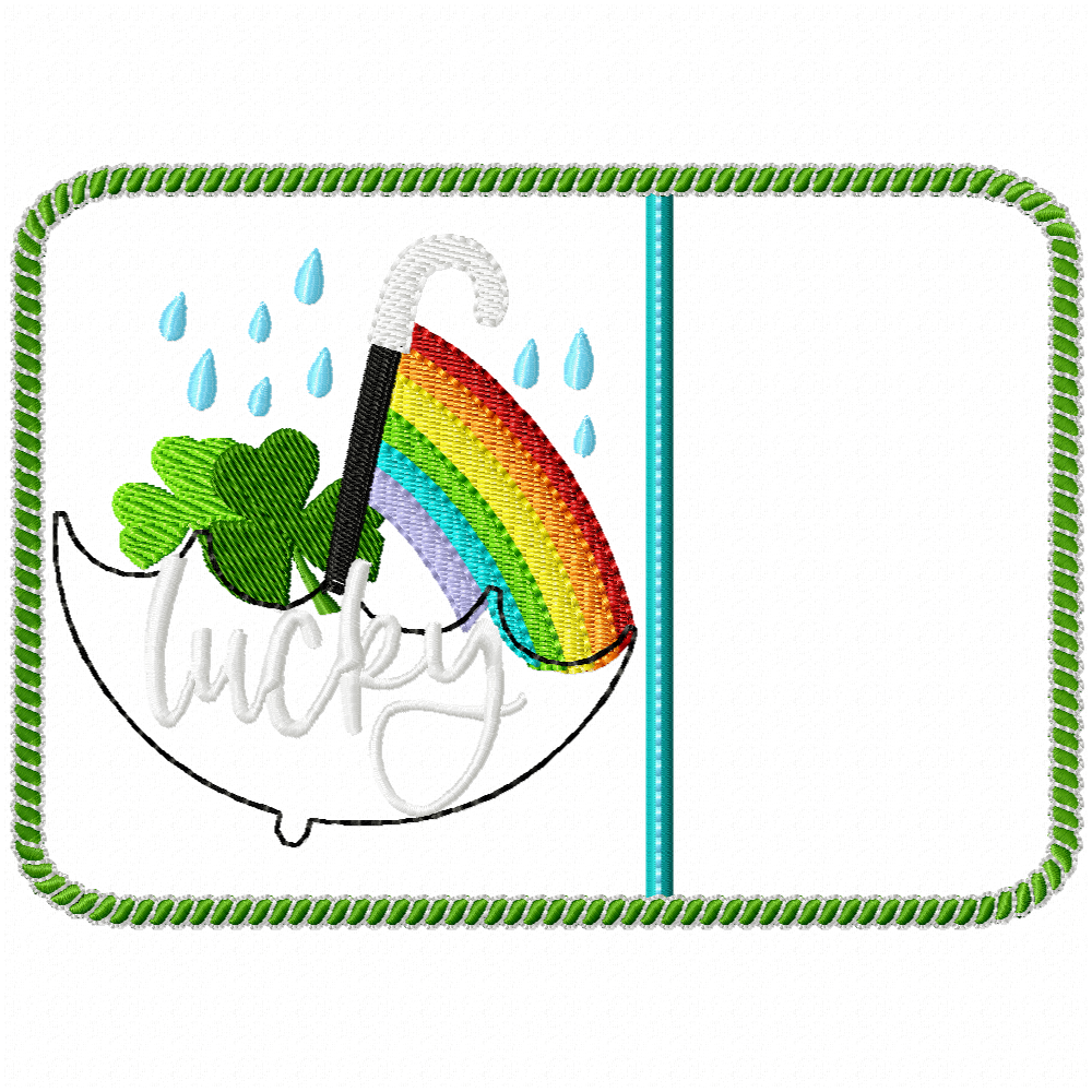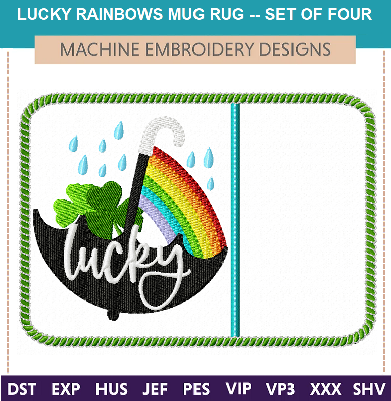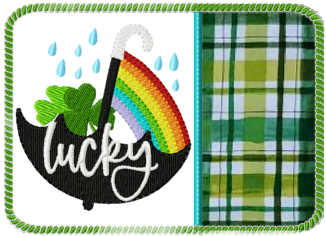 St. Patrick's Day Lucky umbrella designs and mug rug. One includes an applique umbrella.