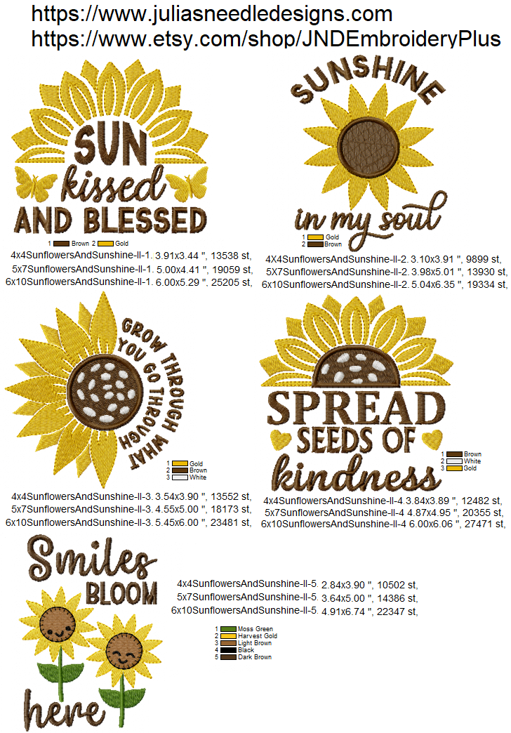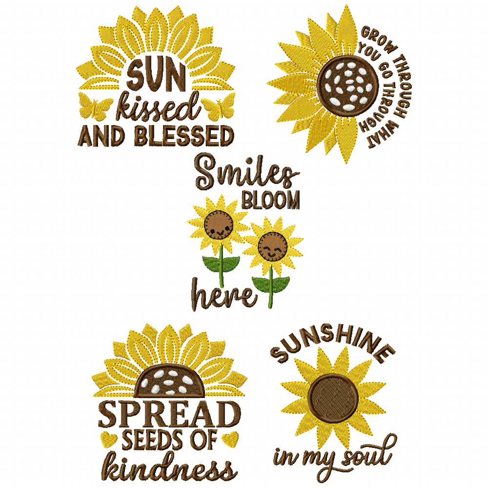 Set of five sunflower designs to put the sunshine and inspiration in your heart.